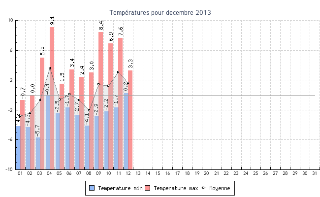 | 10 | -2.2 °C | 6.9 °C | 1.2 °C | 0.5 km/h (4.3 km/h) | N |